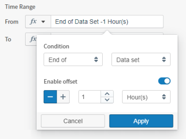 If you select Dynamic Time, the From and To boxes are filled with Start of data and End of data automatically. Use the boxes to select different dynamic From and To times:
