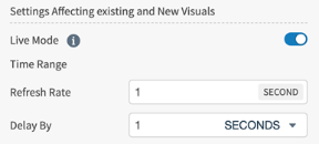 If you enable live mode for a data source (Enable Live Mode checkbox), you can set the refresh rate and delay time. The time bar defaults expand to show these settings.