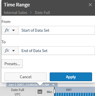 Adjust the Time Bar Range Using the Time Range Dialog