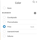 Select the aggregation function that should be used with the color metric: SUM, AVG, MAX, MIN, or (for some data sources) LAST VALUE. See Metric Aggregation Functions.