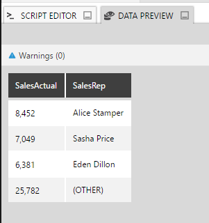 By default, the table will show top 3 Sales and the sum of the rest of the Sales. Switch to View mode and change the value in the Single Number filter to change the number of top Sales that are visible.