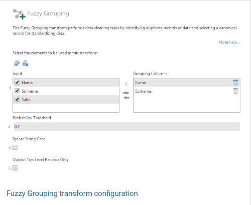Steps to configure the Fuzzy Grouping transform: