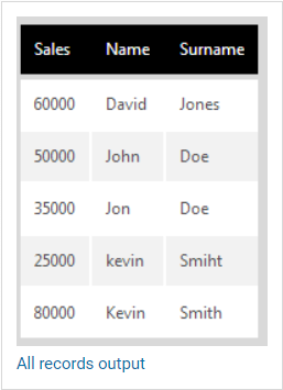 With Output Top Level Records Only checked: